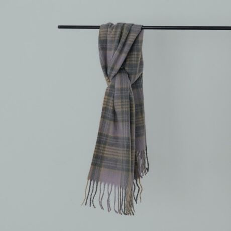 トレンド感あふれるチェック柄が特徴のマフラー。