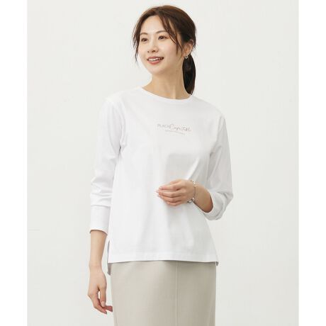 ■デザインすっきりとしたシルエットで、インナーとしても1枚着としても活躍するロゴTシャツ。フロントには、2色・2種類の字体を組み合わせた大人っぽいロゴデザインをプリントしています。穏やかさと心地よさを意味する「PLACID」「Confortable」という言葉をメインに、「自分のひと時を大切に」というメッセージを添えました。重ね着にも便利なデザインで、穏やかな時を過ごす大人のためのTシャツになっています。