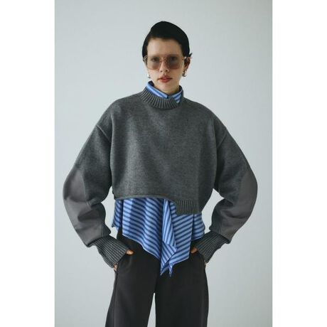 程よく体から離れホクシーなシルエットが魅力的なニットトップス様々なアイテムとレイヤードを楽しんで。重心が上にみえるのでスタイルUP効果も抜群。膨らみのある滑らかな糸でしっかりと編み立てした肉感のあるニット素材。袖部分に光沢のある布帛生地をドッキング。アシンメトリーヘムニットトップス[注意事項] ※画像の商品はサンプルです。実際の商品と仕様、加工が若干異なる場合があります。 ※画像の商品は光の照射や角度、お使いのモニター環境により、実物と色味が異なる場合がございます。 ※着用、お取り扱いの際は、アテンションタグをご確認ください。