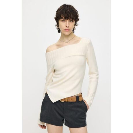 【ASYMMETRY TOP / アシンメトリートップス】■ポイント大胆に開いたワイドネックがデコルテを美しく見せるウール混セーター。オフショルダーでも着られるデザインで、リラックス感と女性らしさを兼ね備えた1枚です。■ディテールウール混素材で、あたたかさと軽さを両立。ネック部分は太めのリブ編みで、首元に立体感と存在感をプラス。ドロップショルダーとゆとりある身幅で抜け感のあるシルエット。袖のボリュームは抑えて程よく引き締めるバランス設計。■スタイリングオフショルダーで肩を覗かせ、デニムと合わせた大人のカジュアルスタイル。タックインしてワイドパンツやスカートと合わせれば、都会的で洗練された着こなしに。インナーにタンクトップやキャミソールを忍ばせてレイヤードのニュアンスを楽しむのもおすすめ。キャップやスニーカーでストリートライクに、ヒールに合わせてモード寄りにアレンジも◎■生地透け感:無裏地:無伸縮性:無光沢感:無ひっかけに注意ください。着用していくうちにピリングが発生します。洗濯絵表示を確認頂き、内容の確認をお願い致します。■商品のお気に入り登録お気に入りアイテムの再入荷・在庫1点などの通知を受け取ることができます。■ブランドのお気に入り登録新作アイテムの入荷や人気アイテムの再入荷、おすすめトピックスなど、いち早くブランドの情報を受け取ることができます。[注意事項]※画像の商品はサンプルです。実際の商品と仕様、加工が若干異なる場合があります。※画像の商品は光の照射や角度、お使いのモニター環境により、実物と色味が異なる場合がございます。※着用、お取り扱いの際は、アテンションタグをご確認ください。