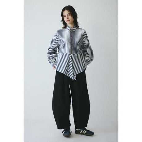 洗練された印象のストライプ素材のシャツウエスト下からの切り替えのカッテイングが動きがあり、デザイン性のある1枚に。ニットなどとレイヤードするとアクセントになり◎多様に使える他にはないデザインです。密度の高い細番手の平織で、さらっとした肌ざわりが特徴。薄手でややハリのある風合いです。フレアヘムシャツ[注意事項] ※画像の商品はサンプルです。実際の商品と仕様、加工が若干異なる場合があります。 ※画像の商品は光の照射や角度、お使いのモニター環境により、実物と色味が異なる場合がございます。 ※着用、お取り扱いの際は、アテンションタグをご確認ください。