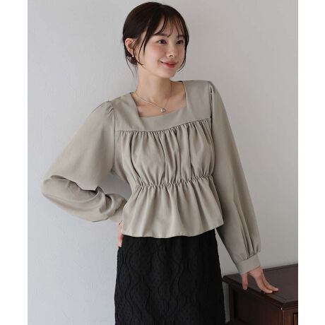 シャーリングギャザーとペプラムデザインがトレンドライクなブラウス。