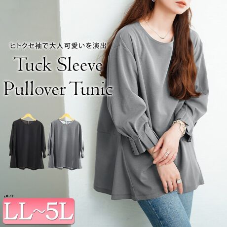 【大きいサイズ】 袖口タックパールボタンフレアチュニック 大きいサイズ レディース チュニック 長袖