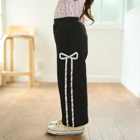 【セットアップ可】【毛玉バイバイ裏毛】リボンラインワイドパンツ