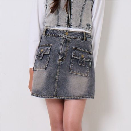 フロントのダブルポケットがおしゃれなデニムスカパンです。
