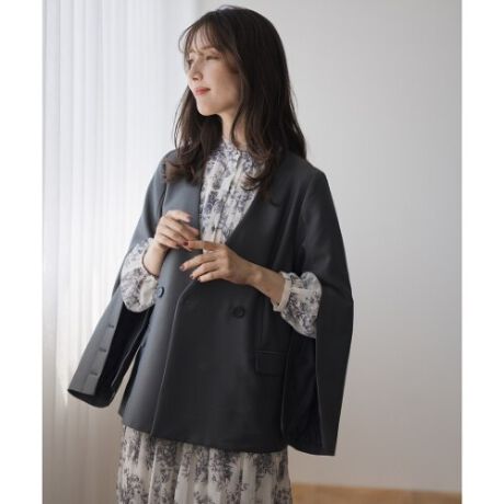 スリット入りのスリーブで抜け感のある着こなしを楽しめるジャケット。深く切り込まれたVネックがすっきりとした首元を演出します。小物類を収納できるフラップポケット付き。スカートやワンピーススタイルと合わせたコーディネートがおすすめです。■fabric透け感[無し]裏地[一部有り]伸縮性[やや有り]生地の厚さ[普通]