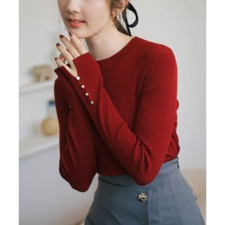・程よいフィット感とリブの立体感で、体型をすっきり見せつつ女性らしいシルエットに仕上がります。