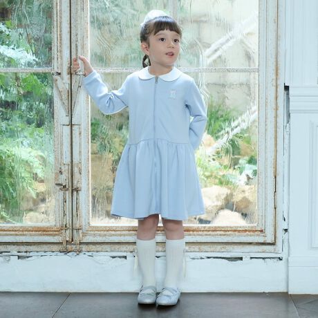 フレアシルエットの裾と衿つきデザインで、女の子らしさを高めました。