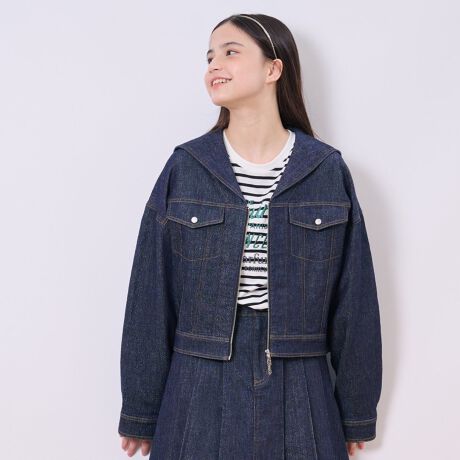 ブランドロゴを刺しゅうした、セーラーカラーが可愛いポイント。