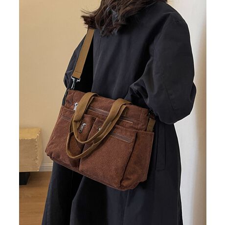 大容量コーデュロイバッグ。韓国風シンプルデザインでおしゃれ度アップ!