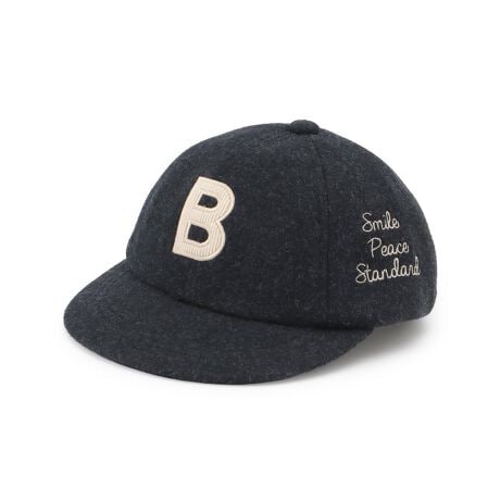 Bのイニシャルのアップリケが入ったキャップ。ウールライクな素材感が、秋冬のカジュアルスタイルにぴったりです。帽体にも、ロゴや車の刺しゅう入り。後ろの面ファスナーのベルトで調節ができ、フィット感も安心です。