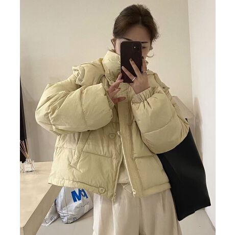 大きめフロントポケットがアクセントになったショート丈のダウンジャケット。