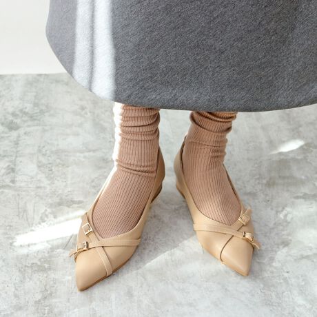 すっきりとしたポインテッドトゥがすらっとした足元を演出するFin(フィン)のポインテッドトゥベルテッドフラットシューズが登場。華奢な2本のベルトをクロスさせたシンプルながら遊び心のあるデザインは足元に程よいアクセントを与えてくれるはず。太めのフラットヒールやカットラインなど、足元全体のバランス感がシルエットの綺麗なスタイリングを完成させてくれます。