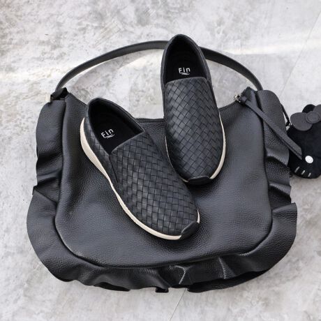 中敷きの下には低反発クッションをセットしているので、長時間の歩行やレジャーにも安心して履けそうです。履き口にはゴムが入っているので着脱も楽々なのが嬉しい。程よく丸みを帯びたフォルムが足をすっぽり包み込んでくれるので窮屈感もなさそう。シンプルなスラックスやジョガーパンツ、デニムやワイドパンツにはもちろんですが、スカートやワンピースコーデにも◎。カラーによって雰囲気が変わるので、ご自分のスタイルに合ったお好きな一足をチョイスして。