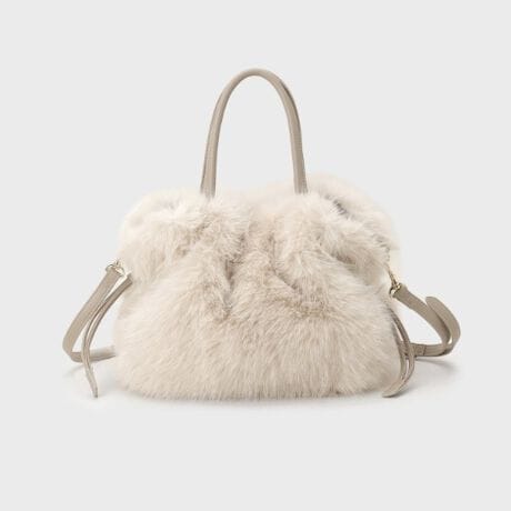 スタイリングのアクセントになるリッチなフェイクファーのショルダーバッグ。
