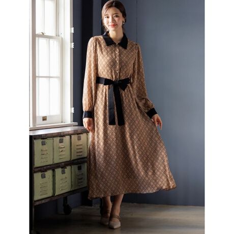 クラシカルなムードを放つバイアスチェック柄のシャツワンピース
