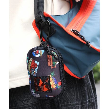 カラビナ付きでバッグやリュックに取り付けられる便利なミニポーチ。