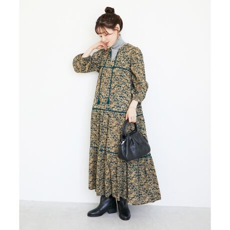 ヴィンテージ感のある小花プリントのティアードワンピース。