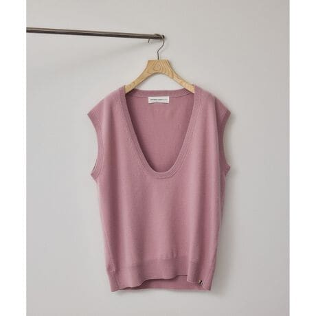 しっとりと滑らかでストレッチの効いたカシミア素材で、肌あたりが優しくしなやかな着心地が特徴のニットベスト。