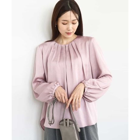 上品な印象で着こなせるブラウスはONシーンにもおすすめ。ジャケットやカーディガンと合わせると、タックディティールが正面から見え、顔周りを華やかに見せてくれます。