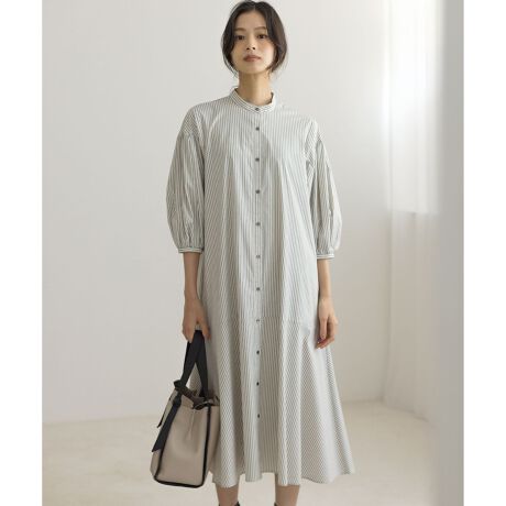 【スタッフコメント】▼身長158cm|着用サイズ2 (通常着用サイズM)ボリューミーな袖で気映えするので、1枚でコーデが決まるワンピースです。締め付けのないシルエットで、まだ暑さの残る初秋でもサラッと着用いただけます。軽くてシワにもなりにくく、ストレッチ性もありストレスなく着用いただけます。
