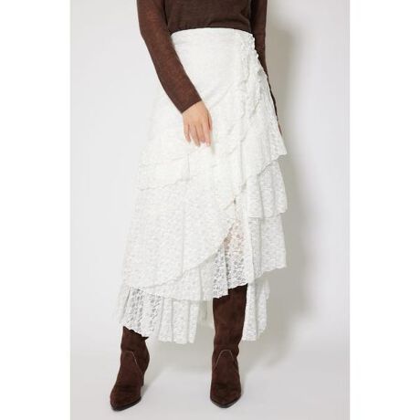 【美シルエットで魅せるクラス感たっぷりの華やかで上品なレーススリットマーメイドスカート】■ポイント柔らかく華奢なフラワーレースを全面に使用して落ち感を大事に仕上げたエレガントな透け感が美しいフリルレーススカート。デイリー使いはもちろん、特別な日のスタイリングにもぴったりなデザインです。伸縮のある軽やかな裏地が付いているので、安心してご着用いただけます。■ディテールウエスト周りはすっきりとしたシルエットですが、フロントとバックにフリル&ラッフルデザインを加えることで立体感をプラスしました。さらに、サイドには深めのスリットを取り入れヘルシーな女性らしさを引き立てます。■スタイリングトップスはタイトでもフワっとしたものでも綺麗にスタイリングできます。■生地透け感:あり裏地:あり伸縮性:あり光沢感:なし厚さ:薄手■商品のお気に入り登録お気に入りアイテムの再入荷・在庫1点などの通知を受け取ることができます。[注意事項]※画像の商品はサンプルです。実際の商品と仕様、加工が若干異なる場合があります。※画像の商品は光の照射や角度、お使いのモニター環境により、実物と色味が異なる場合がございます。※着用、お取り扱いの際は、アテンションタグをご確認ください。