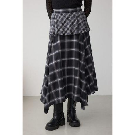 ■イレヘムチェックスカート■ポイントトレンドのオンブレチェック柄のスカート。取り入れるだけで秋を先取りできる1着になっています。■ディテール裾の長さがアシンメトリーになっていて、歩くたびに動きが出て、トレンドライクな印象に仕上がります。2素材のチェック柄を使用したレイヤ□ドデザインもポイント。■スタイリングTシャツやシャツ、足元にブーツなど、カジュアルなアイテムとも好相性で、バランスの取れた着こなしが叶います。■生地オリジナルチェックの綿起毛ツイルを使用。 透け感:なし裏 地:あり伸縮性:なし光沢感:なし[注意事項]※画像の商品はサンプルです。実際の商品と仕様、加工が若干異なる場合があります。※画像の商品は光の照射や角度、お使いのモニター環境により、実物と色味が異なる場合がございます。※着用、お取り扱いの際は、アテンションタグをご確認ください。