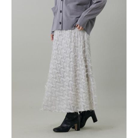 ■デザイン華やかな表情のオリジナルのジャガード素材を使用したAラインシルエットのスカートです。 バイアスカット仕様で伸びがよいので自然にフィットします。ロング丈で上品に見えるのにウエストゴム仕様でラクに着脱できるのも嬉しいポイントです。■素材タテ、ヨコ共にポリエステルの糸を使用した桐生産地ならではのブランドオリジナル柄のカットジャガード織物です。通常の横糸をカットするジャガードとは違い、縦糸をカットする事によって毛足の長いフリンジ感を出しています。適度なシアー感と毛足の長いフリンジが組み合わさる事で高級感を出しています。軽く、シワになりにくく、ドレープ性を併せ持ったイージーケアの高級素材です。・ペチコートあり・ウエストゴム仕様・水洗い可※生地バイアスカット仕様のため、総丈に若干の個体差が生じる場合がございます。■サンプル撮影商品画像の商品はサンプルです。実際の商品とはサイズや色味、素材、デザイン等の仕様が若干変更になる場合がございます。■カラーについては、可能な限り実際の商品に近いカラーで撮影をおこなっておりますが、照明の関係により実際の製品とは色味が違って見える場合があります。またパソコン・スマートフォンなどの環境により、若干製品と画像のカラーが異なる場合もございます。現物と画像のカラー差異については返品理由となりませんので、予めご了承ください。■サイズ表記はあくまで目安となります。