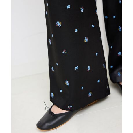 ・程よく厚みのあるサテンにSLOBEらしい小花柄の刺繍を施したパンツ。