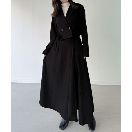 前リボンテーラードジャケット+フレアラッフルスカート セット(薄手、裏地なし)