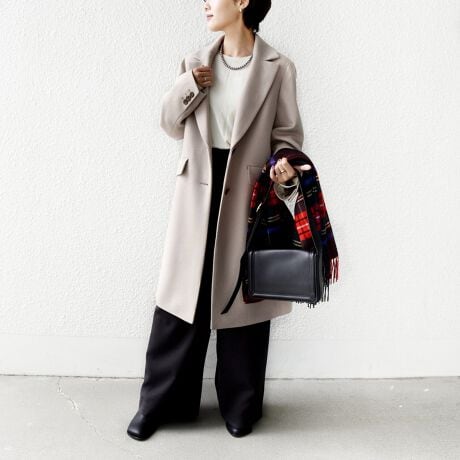 シンプルなスタイルにも映える、風合いの良いチェスターコート