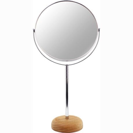 【手軽に使えて細かい部分もハッキリ】シンプルで使い勝手も抜群。「Acoustic ウッドアルミスタンドミラー7倍鏡 ロング」【空間に溶け込むナチュラル感】ベースには天然木の無垢材を。スタイリッシュなシルバーミラーにマッチし、温かみをプラス。【アイメイク等に最適な7倍拡大鏡】片面が7倍拡大鏡になった、両面ミラー。細部までしっかり見えて、メイクがしやすい♪(※)表は等倍鏡、裏は約7倍の拡大鏡です。【360度回転する便利なミラー】・360度回転式で、お好みの角度に微調整。回転させることで、両面使い分けもラクラク。【工具いらずで取り付けカンタン】ミラーステムを台座の穴に差し込み、裏から蝶ネジをとめるだけ。スムーズにセットできる◎【2段階調節OK、お好みの高さに】支柱を使えばロングモードになる、2段階高さ調節タイプ。ご使用スタイルに合わせてチェンジ!【コンパクトながら安定感もばっちり】小さめながらも、どっしり安定感のあるベース。安心して使えて、ギフトにもおすすめの日本製。
