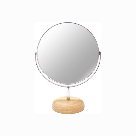【手軽に使えて細かい部分もハッキリ】シンプルで使い勝手抜群。「Acoustic ウッドアルミスタンドミラー7倍鏡 ショート」【空間に溶け込むナチュラル感】ベースには天然木の無垢材を。スタイリッシュなシルバーミラーにマッチし、温かみをプラス。【アイメイク等に最適な7倍拡大鏡】片面が7倍拡大鏡になった、両面ミラー。細部までしっかり見えて、メイクがしやすい♪(※)表は等倍鏡、裏は約7倍の拡大鏡です。【360度回転する便利なミラー】・360度回転式で、お好みの角度に微調整。回転させることで、両面使い分けもラクラク。【工具いらずで取り付けカンタン】ミラーステムを台座の穴に差し込み、裏から蝶ネジをとめるだけ。スムーズにセットできる◎【コンパクトながら安定感もばっちり】小さめながらも、どっしり安定感のあるベース。安心して使えて、ギフトにもおすすめの日本製。