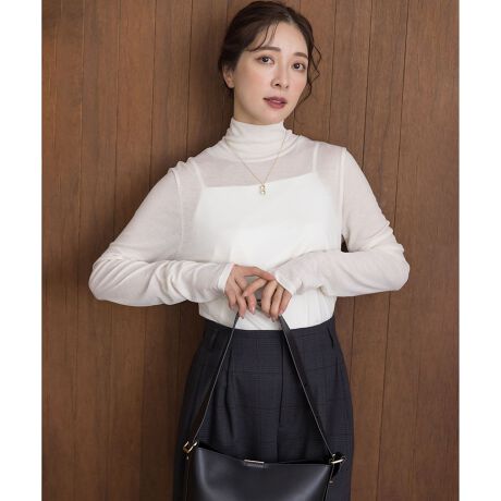 高めの襟と程よいフィット感でレイヤースタイルに重宝するシアーインナー