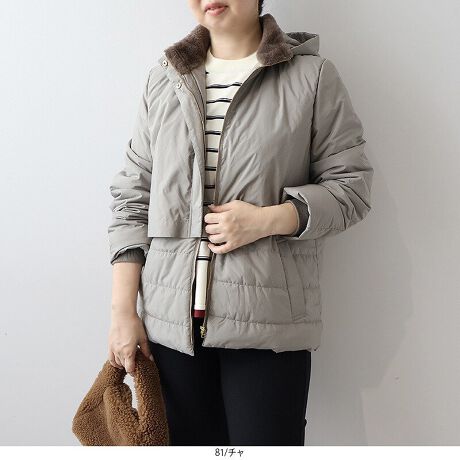 身頃上部は軽くて温かいにダウン仕様、下部はボリュームを抑えた中綿にすることで、1枚でもおしゃれに見える異素材切替デザインに仕上げました。