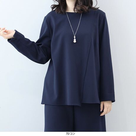 シンプルながらも洗練されたディテールが光る、アシンメトリーデザインのブラウスです。