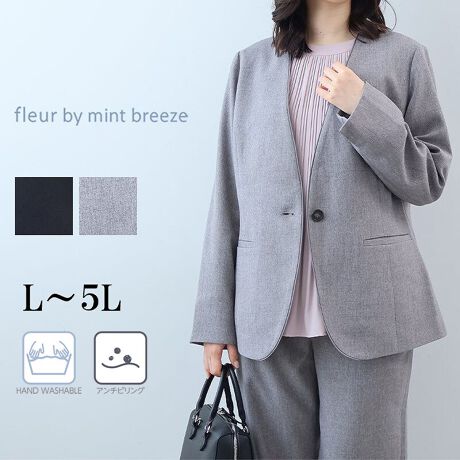 きちんと感と着心地を両立!セットアップ可能な上品ノーカラージャケット