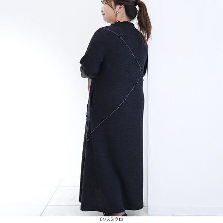 裾にほんのりフレアを入れた大人フェミニンなシルエットが優しく体を包み込み、女性らしい柔らかな印象に。