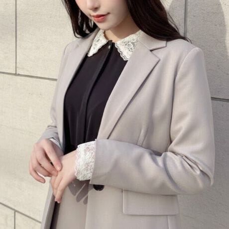 シネマヒロイン"Daisy"が映画のワンシーンで着こなすクレリック衿のドレスを、今季注目のレース使いでアップデートした一品。