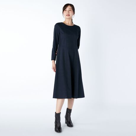 [型番:78251214021]着こなしをスマートに見せてくれる細ストライプ入りのワンピース。さりげないウエスト切り替えによって、ボディラインもきれいに見えます。単品でもアウターを重ねても着映えする便利な一枚。※商品画像はサンプルを使用しているため、実際の商品と色味などの仕様が異なる場合がございます。予めご了承ください。model:T.172/B.83/W.59/H.87着用サイズ:38