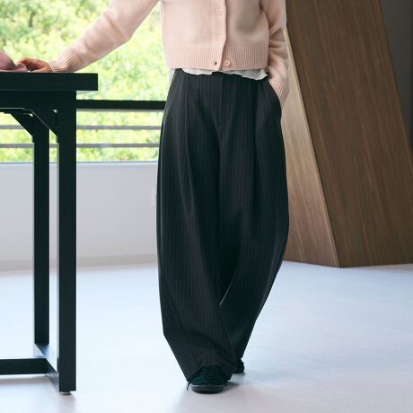 ワイドすぎない適度なゆとりがありながら、スラックスのようなきちんと感も兼ね備えたアイテム。