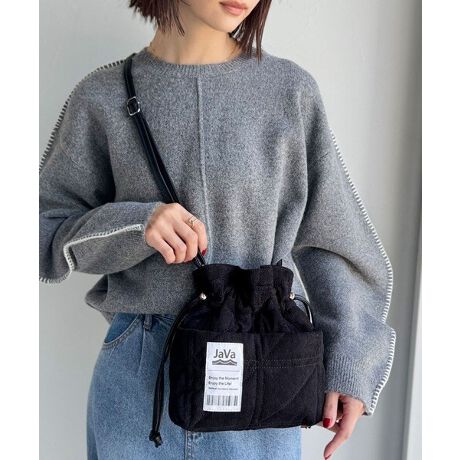 秋冬シーズンのスタイリングにピッタリなコーデュロイ巾着バッグ。