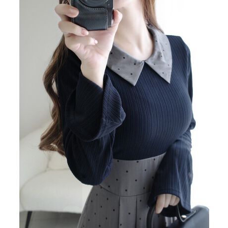 小さなドット柄がトレンド感を演出し、裾の無地切り替えが清楚な印象を与えます♪