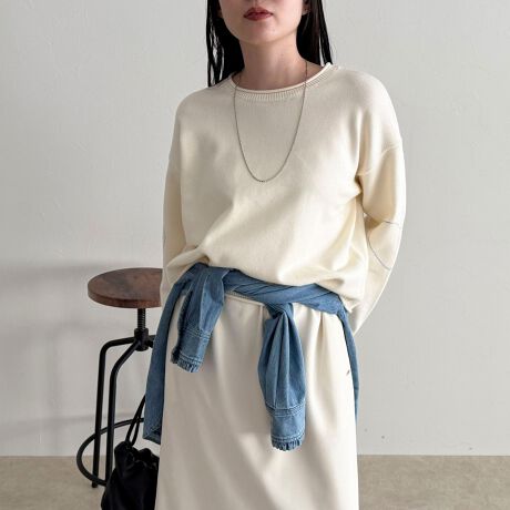 ・もちっとした素材感で厚すぎず、早めの時期から着られるニットプルオーバー