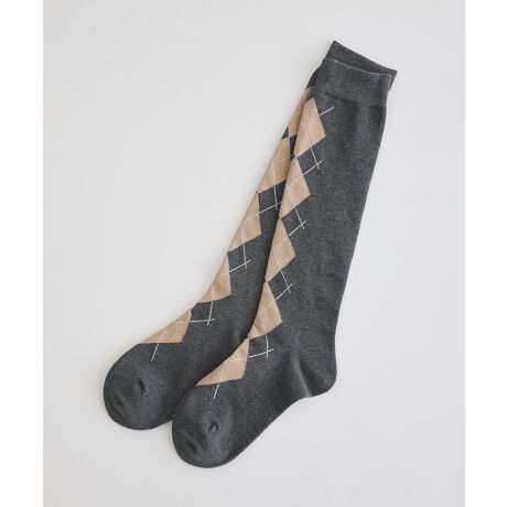 クラシカルなアーガイル柄が秋らしい足元を演出するハイソックス。ミニ丈やショートパンツに合わせたり、ロンングスカートからちらっと覗かせるアクセント使いにぴったりなアイテムです。スニーカーやマニッシュなローファー、ロング丈ブーツとも相性抜群。程よい肉感のコットンベース素材で穿き心地良く、秋口からロングシーズンでお楽しみいただけます。※モデル着用画像は、光の当たり具合で色味が違って見える場合がございます。※お使いのモニター環境によって商品の色味が違って見える場合がございます。