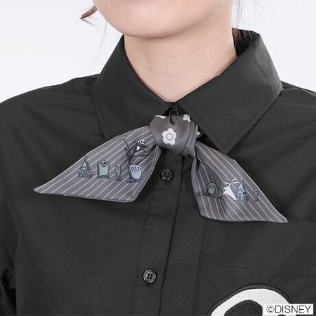 表裏でキャラクターモチーフとデイジーを組み合わせたリボンスカーフ。