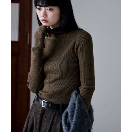 着回しに優れたコンパクトさやベーシックカラーがシンプルで使い勝手の良い、ハイネックのリブニット。