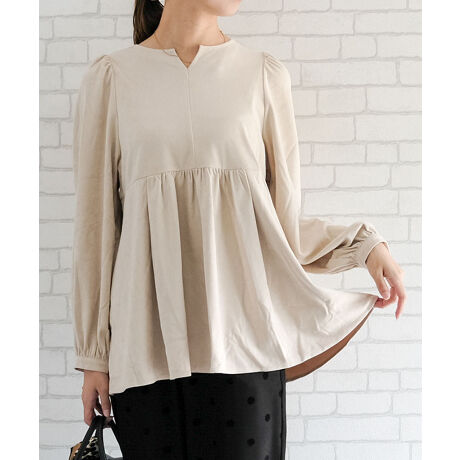上品な大人の女性らしさを引き立てる、スエード調のペプラムトップス。