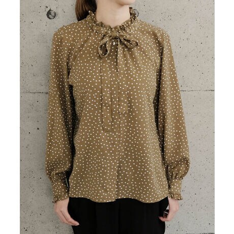 クラシカルな雰囲気を漂わせる、ドット柄フリルリボンブラウス。