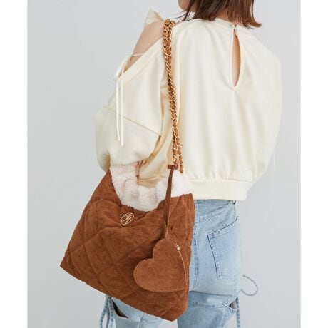 キルティングがリッチに魅せてくれるバッグ。オリジナルのチャームもアクセントに。